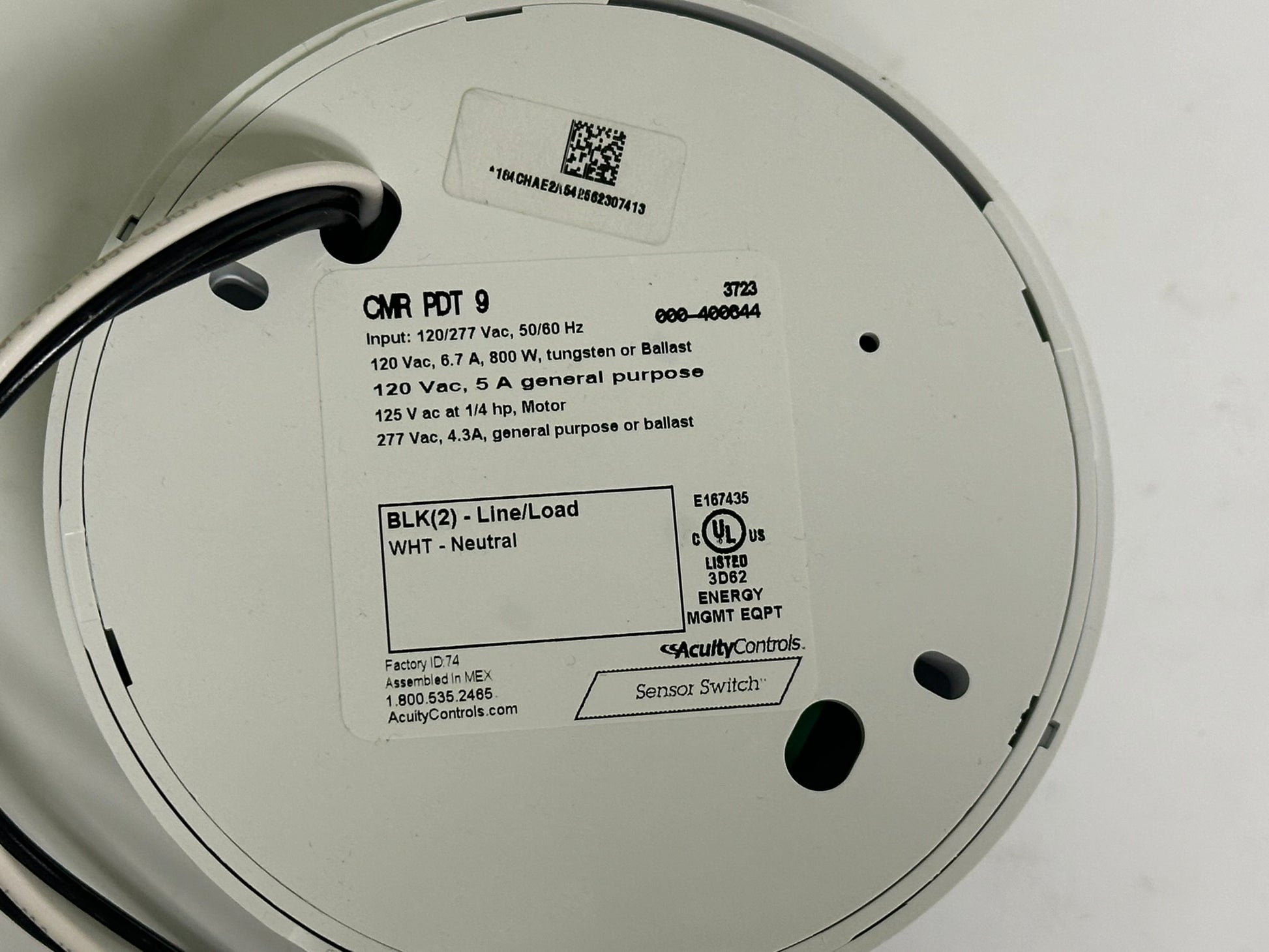 The Sensor Switch (CMR-PDT-9) Dual Technology Ceiling Mount Occupancy Sensor is a set of advanced sensors designed to automatically control lighting based on occupancy. Using both passive infrared (PIR) and ultrasonic technologies, these sensors provide reliable and accurate detection, ensuring lights are only on when needed. Ideal for commercial and industrial spaces, the ceiling-mounted design allows for easy installation, while the dual technology ensures enhanced performance in a variety of environments.