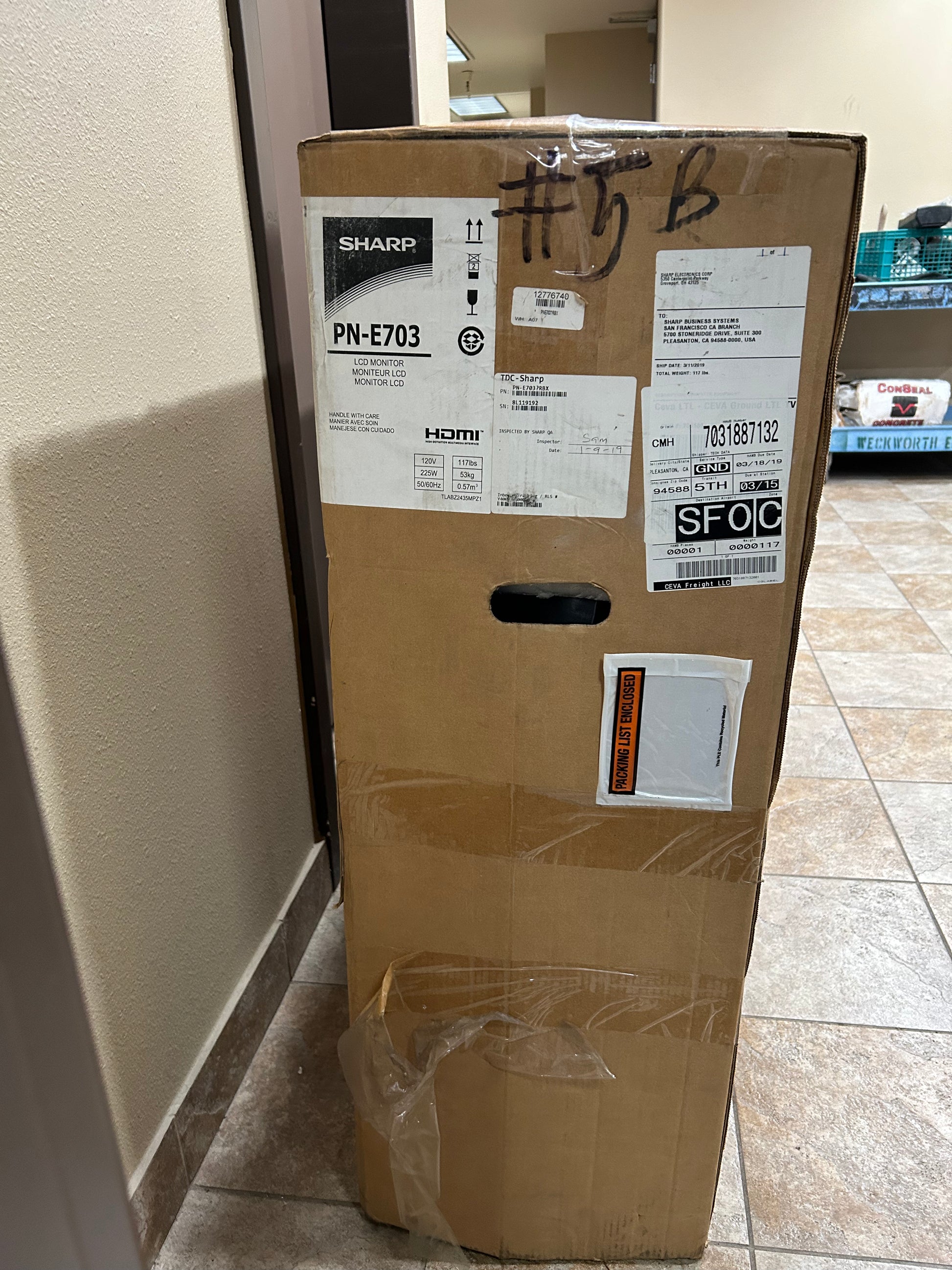 These 70-inch-class (69.5" diagonal) Sharp monitors combines Full-HD image quality, stylishly thin profiles and energy efficiency to create appealing professional signage solutions for a wide range of applications. With their sleek design, around-the-clock operation, and support for landscape and portrait installations, this display offers an amazing degree of flexibility. In hotel lobbies, conference rooms, retail spaces and elsewhere, the PN-E703 will grab and keep the attention of your target audience. Main Features70" Class ( 69.5" viewable ) LED display digital signage1080p (FullHD)edge-lit