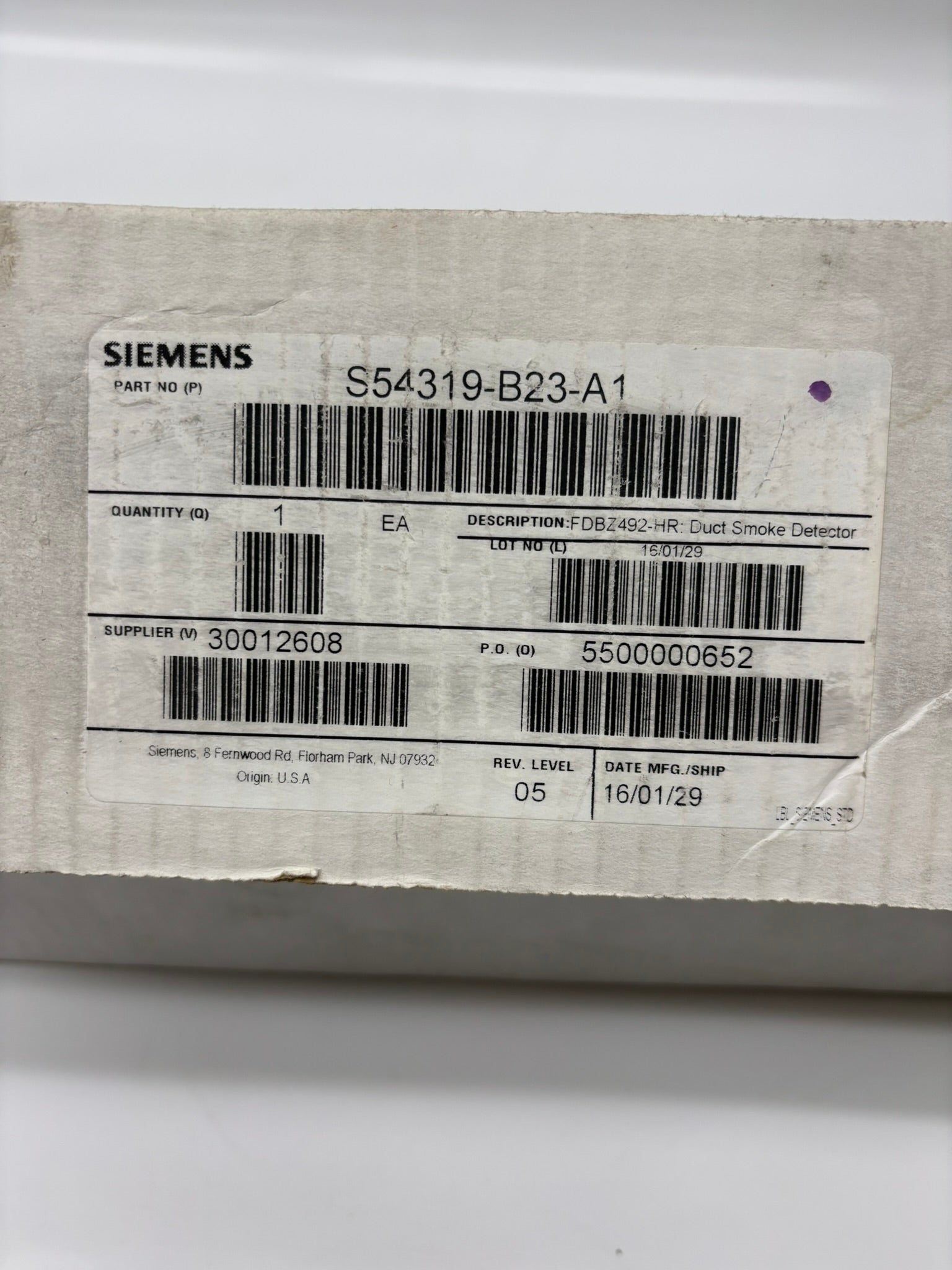 The Siemens FDBZ492 Duct Smoke Detector is a high-performance device designed for optimal air quality and fire safety in HVAC systems. It continuously monitors airflow within ducts, providing early fire detection. When smoke is detected, it triggers an alarm, allowing for quick response to prevent fire spread. Ideal for commercial and industrial buildings, the FDBZ492 ensures reliable, efficient protection for your fire safety system.