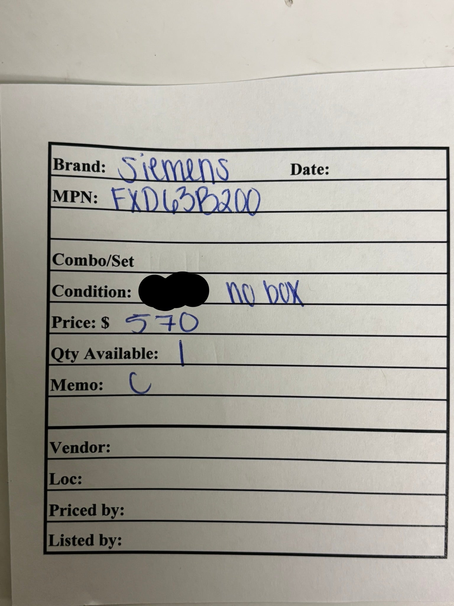 Siemens FXD63B200 200A 3-Pole 600V AC Thermal-Magnetic Circuit Breaker (Used)
