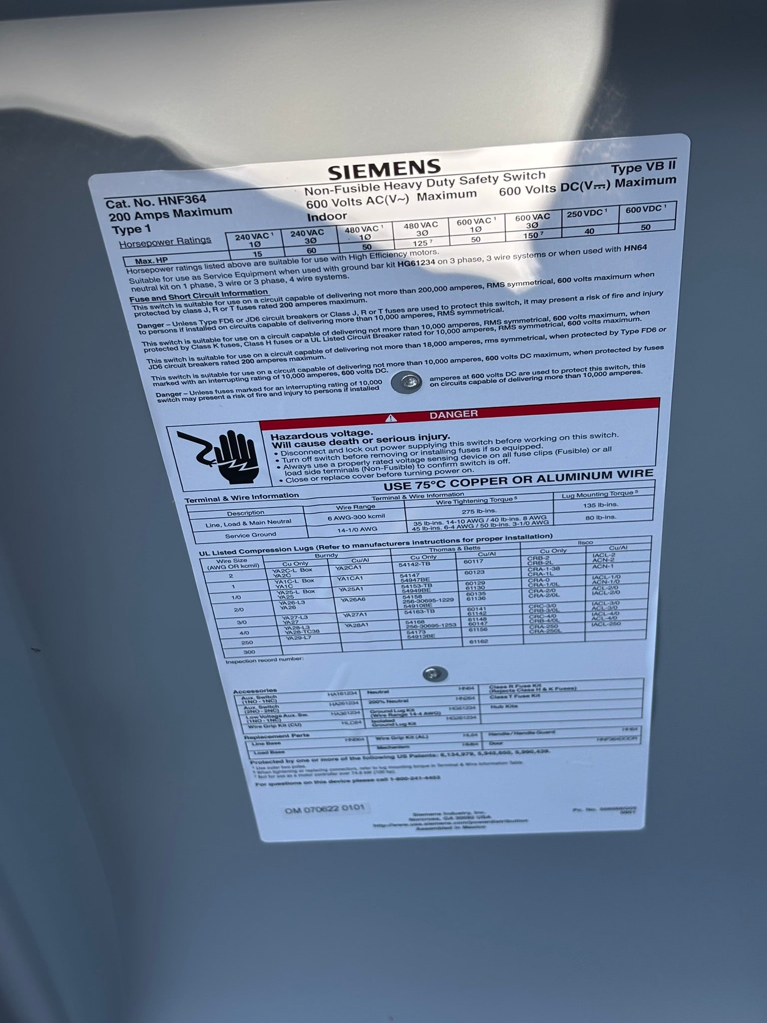 The Siemens Low Voltage Circuit Protection Heavy Duty Safety Switch is a 3-pole, non-fused disconnect switch designed for reliable indoor use. Housed in a Type 1 enclosure, it offers robust protection and performance for demanding applications. This unit is rated for 200A at 600VAC, making it ideal for industrial and commercial power distribution.