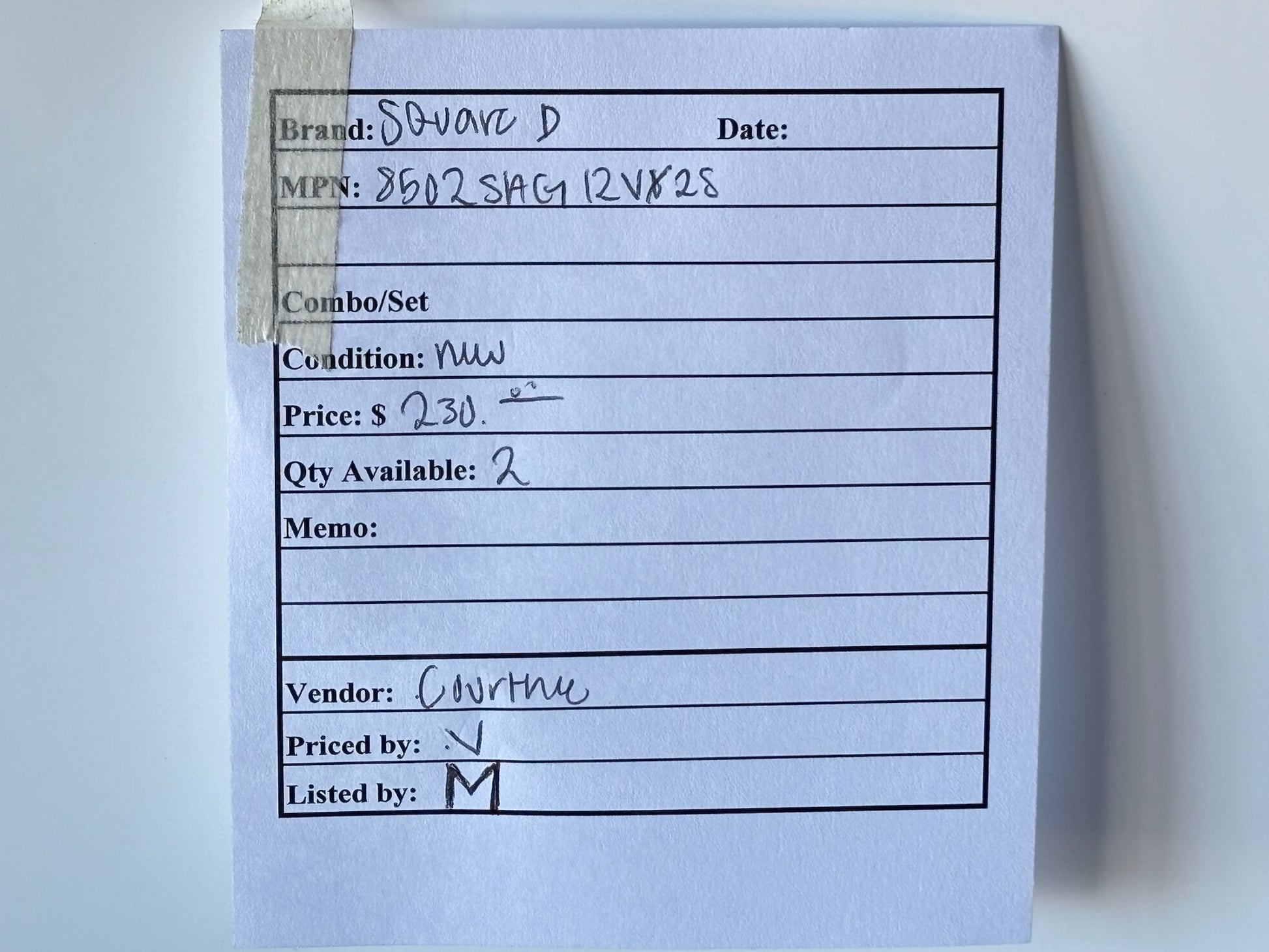 The Square D 8502SAG12V02S is a Class 8502 Type S magnetic contactor designed for full-voltage, three-phase applications with a 9 A current rating. It features a 110 VAC at 50 Hz / 120 VAC at 60 Hz coil voltage, making it suitable for North American control circuits. The unit is built for NEMA Size 00 use, non-reversing operation, and supports switching of motors, transformers, capacitors, and heating loads when overload protection is provided separately. It is rated for operation at up to 600 V maximum and is UL listed and CSA certified, making it suitable for industrial environments. The contactor is offered in various conditions (new, surplus, used) and may come with or without enclosure depending on supplier—so verifying condition and packaging is recommended.