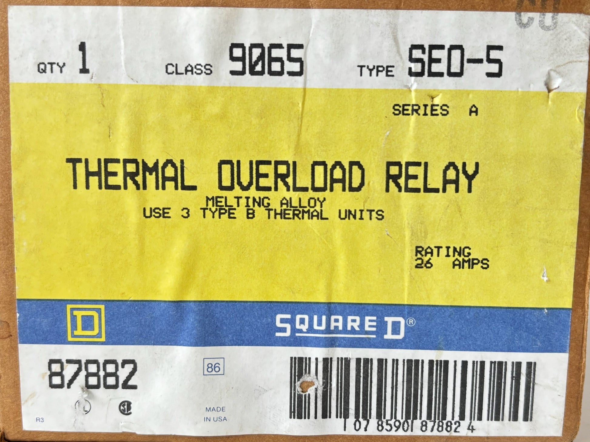 Square D 9065‑SEO‑5 Thermal Overload Relay 3‑Element Melting Alloy, Up to 26 A