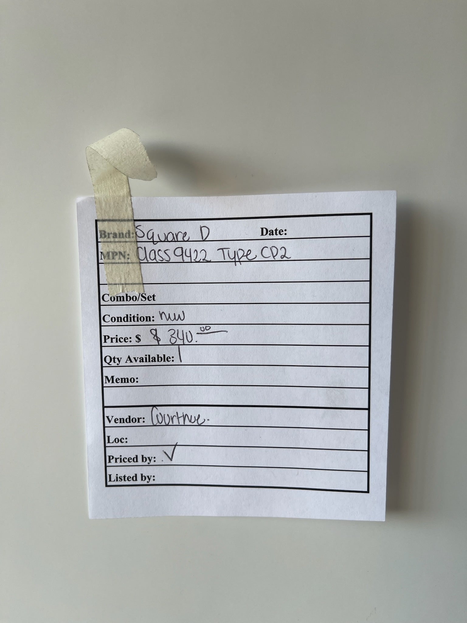 The Square D Class 9422 Type CP2 Rotary Operating Handle is designed for use with safety switches, providing a reliable and secure way to manually operate electrical disconnects. This handle is part of the Class 9422 family and is built to ensure positive operation of the switch mechanism from outside the enclosure.