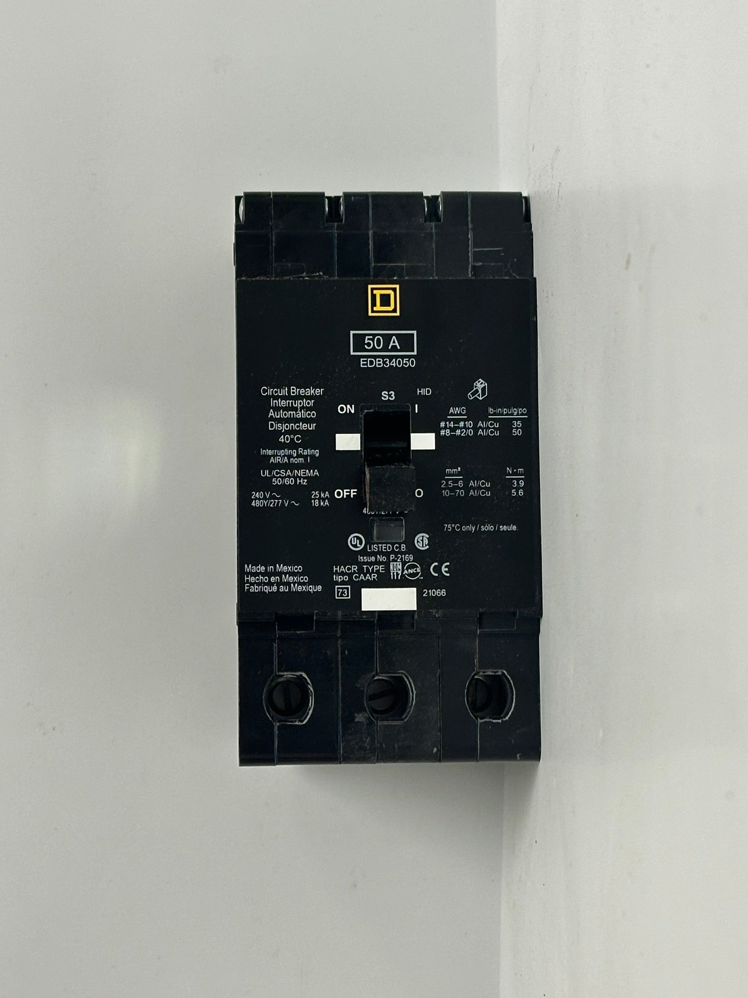 Square D EDB34050 – NO BOX 50A 3-Pole Molded Case Circuit Breaker for 480Y/277V Systems