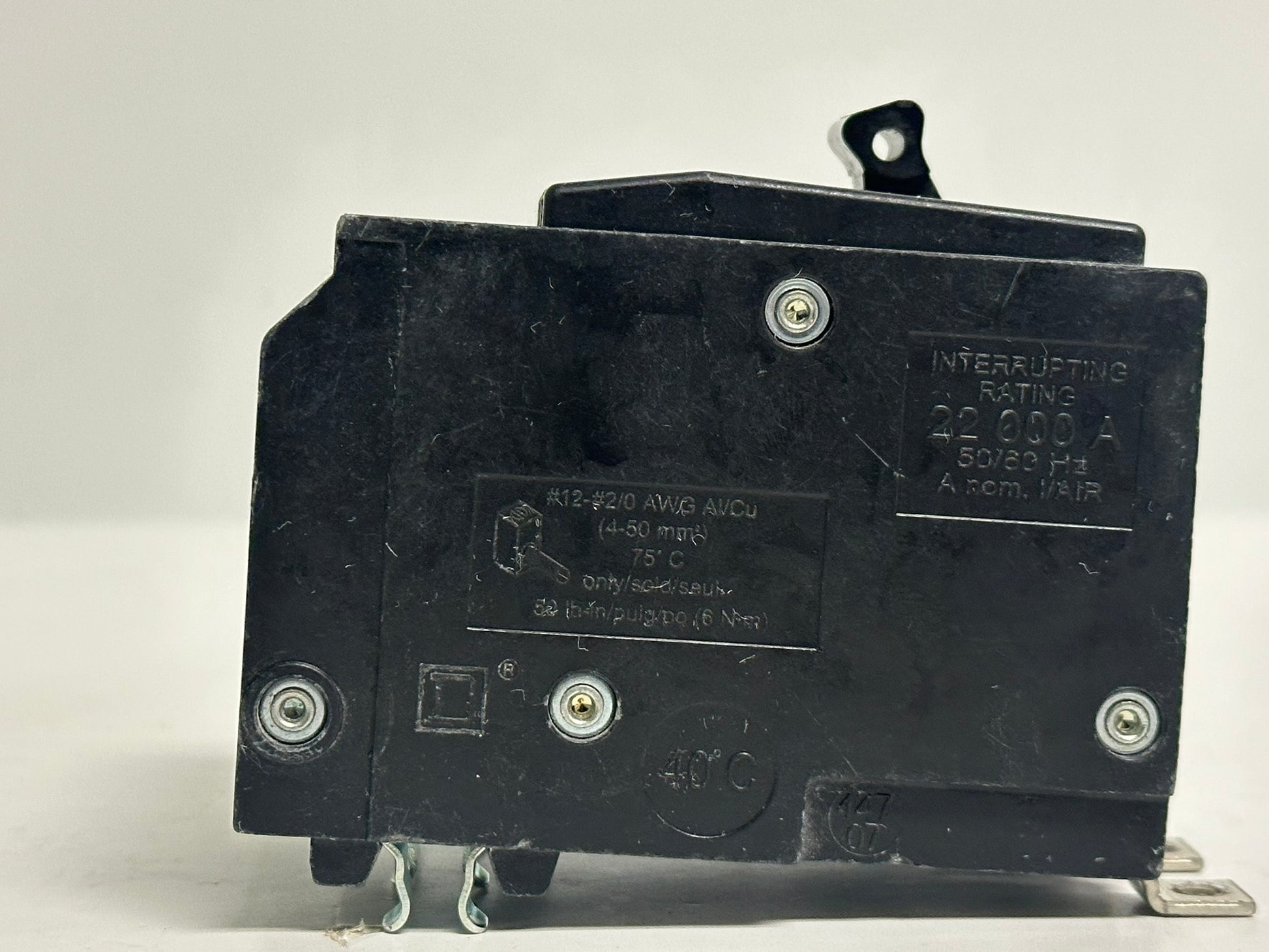 The Square D QOB390VH is a 90-amp, 3-pole bolt-on circuit breaker designed for reliable protection in 120/240V AC systems. It features a thermal/magnetic trip mechanism and a visual trip indicator for easy troubleshooting. Ideal for residential and commercial use, it supports wire sizes from 4 AWG to 2/0 AWG and is compatible with NQ panelboards. This breaker is UL listed and HACR rated, making it suitable for heating and air conditioning applications.