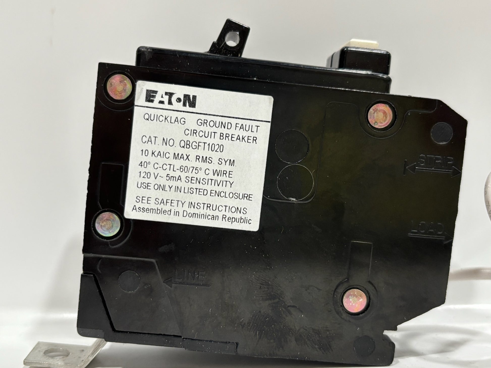 The Eaton QBGFT1020 is a high-performance GFCI circuit breaker designed for reliable protection against ground faults. Rated at 20 amps for 120/240 V systems, it quickly interrupts electrical flow at 5 milliamps to prevent shocks and hazards.