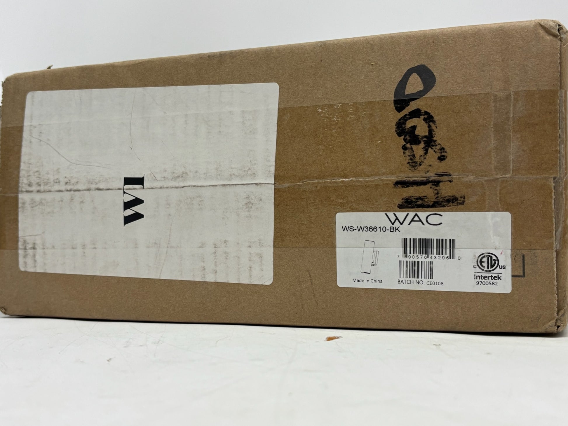 The WAC Lighting WS-W36610-BK is a sleek, modern 10-inch tall outdoor LED wall sconce from the Caliber collection. It features an integrated 11W LED with a warm 3000K color temperature and high 90 CRI for vibrant, natural light. Constructed from durable, weatherproof aluminum with a black finish, this fixture is rated IP65 and ETL listed for wet locations, making it ideal for exterior walls, entryways, and porches. The sconce supports universal 120–277V input and smooth ELV dimming from 100% to 10%, with a concealed driver housed in a standard 4-inch junction box for clean installation. Designed for versatile mounting options, it can be installed vertically or horizontally, providing both up- and down-lighting to suit your outdoor lighting needs.