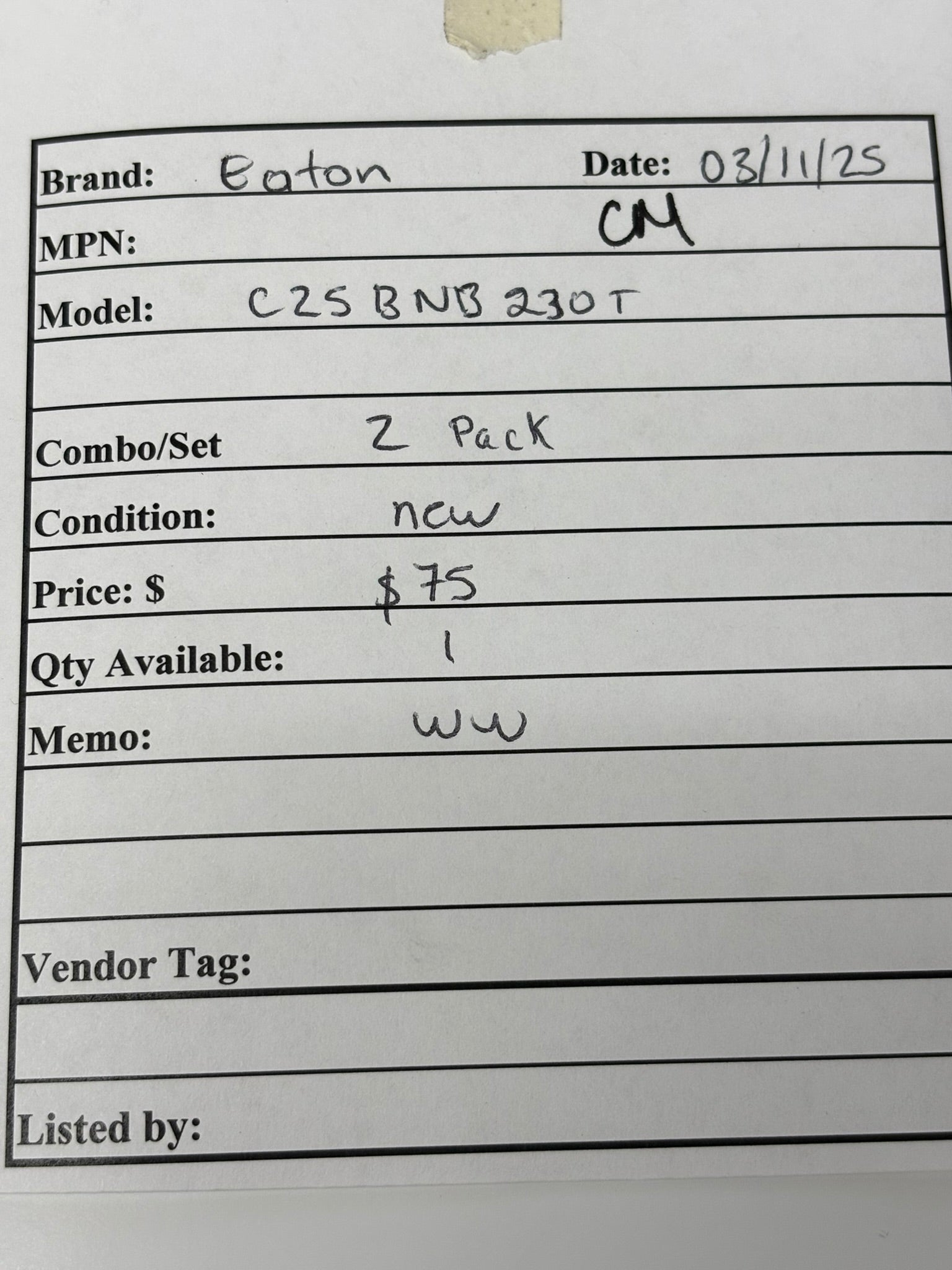 2 PACK Eaton C25BNB230T Non Reversing Definite Purpose Contactor 2 P 30A