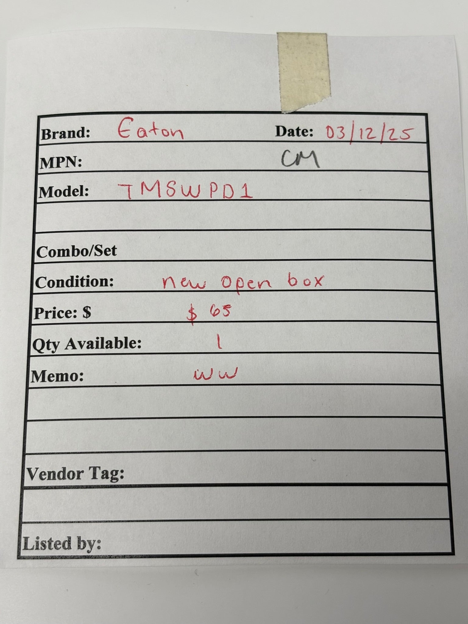 The Eaton WCL Tile Sensor System TMSWPD1 WCL is a wireless, touchless control solution designed for seamless integration into commercial and residential lighting systems. This tile-mounted sensor enables users to activate or adjust lighting with a simple wave or touch, enhancing convenience and hygiene by eliminating the need for physical switches. It features motion and proximity sensing technology, allowing for automatic on/off functionality based on occupancy detection. The system is designed for easy installation within ceiling tiles or wall surfaces, making it an ideal choice for offices, conference rooms, healthcare facilities, and other high-traffic environments. With customizable sensitivity settings, the TMSWPD1 WCL ensures optimal energy efficiency while maintaining user-friendly operation.